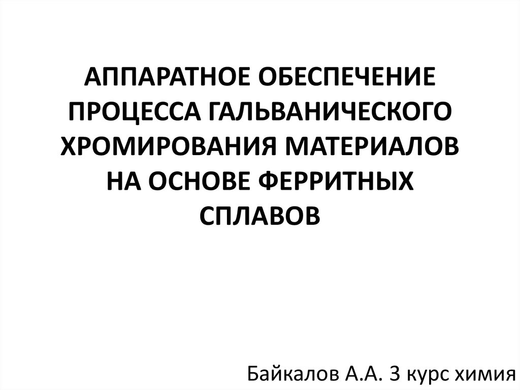 1. АППАРАТНОЕ ОБЕСПЕЧЕНИЕ ПРОЦЕССА ГАЛЬВАНИЧЕСКОГО ХРОМИРОВАНИЯ МАТЕРИАЛОВ НА ОСНОВЕ ФЕРРИТНЫХ СПЛАВОВ