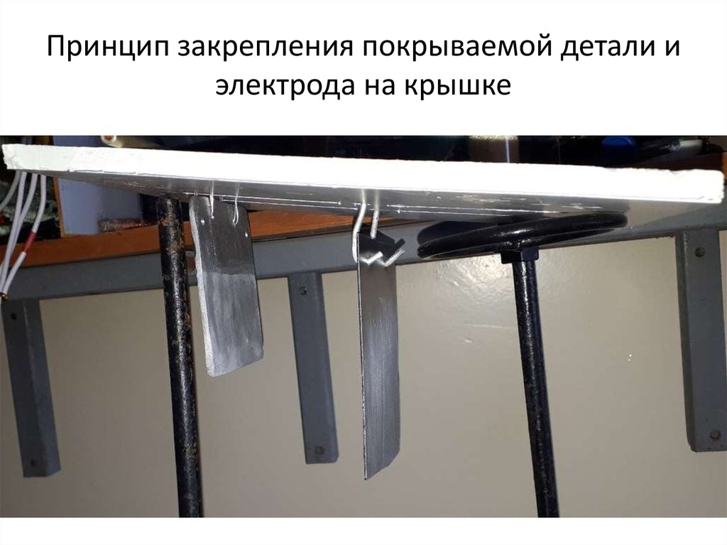 Принцип закрепления покрываемой детали иэлектрода на крышке
