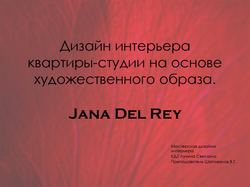 Дизайн интерьера квартиры-студии на основе художественного образа. Jana Del Rey