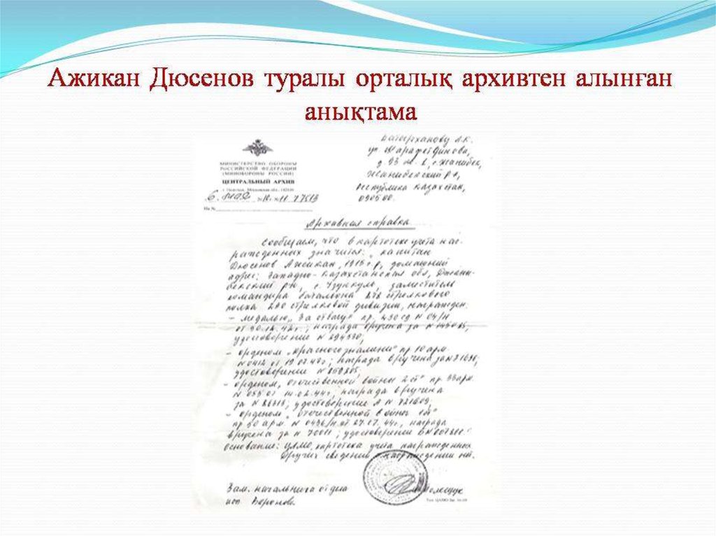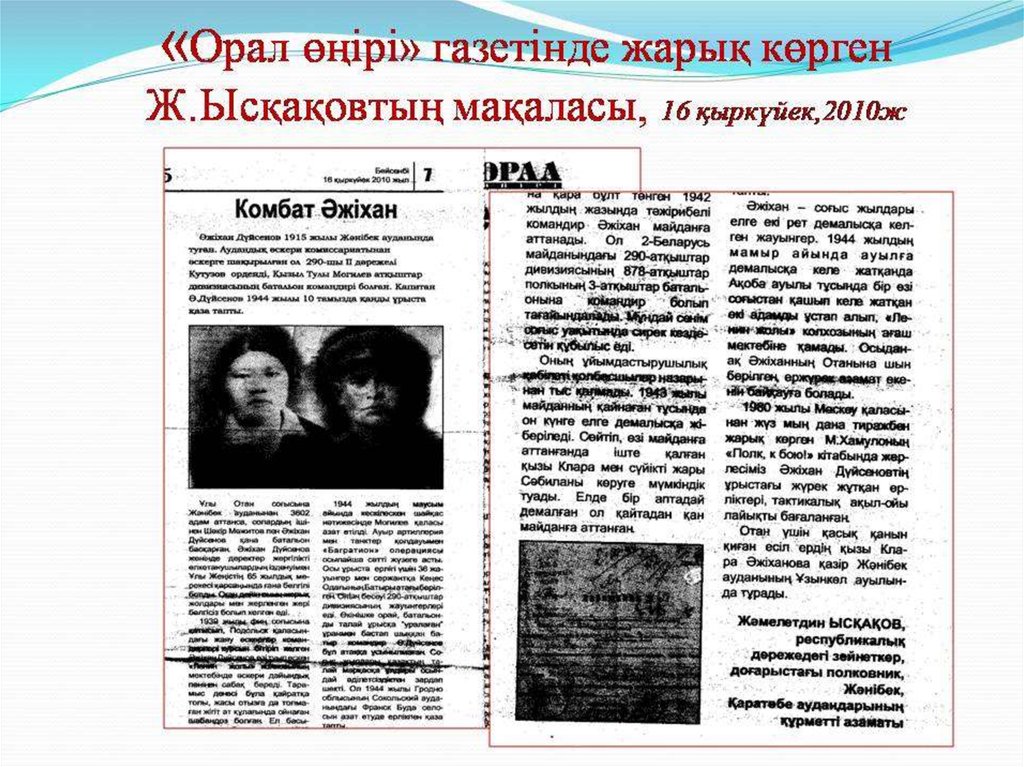 Өшпес ерлігі ұрпаққа мұра - Әжіхан Дүйсенов