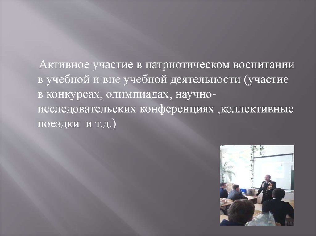 Активное участие в патриотическом воспитаниив учебной и вне учебной деятельности (участие