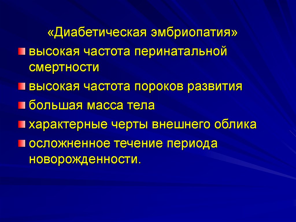 «Диабетическая эмбриопатия»высокая частота перинатальной