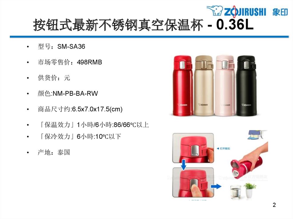按钮式最新不锈钢真空保温杯 - 0.36L型号 SM-SA36