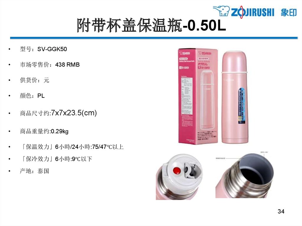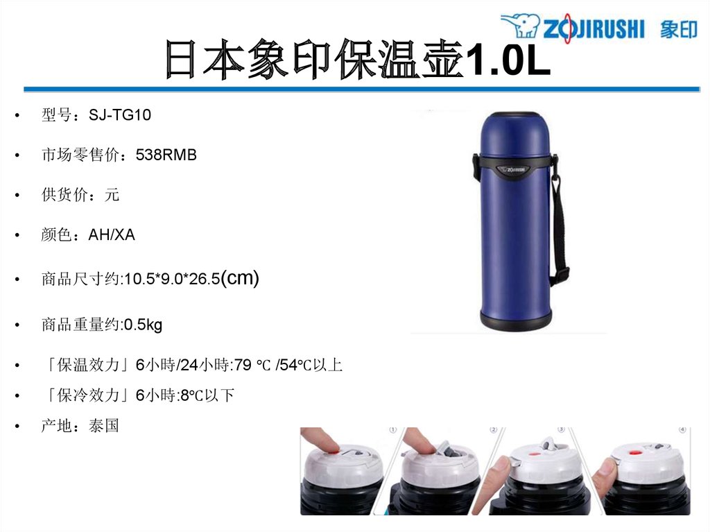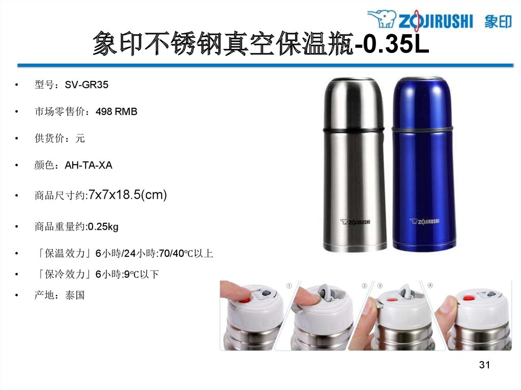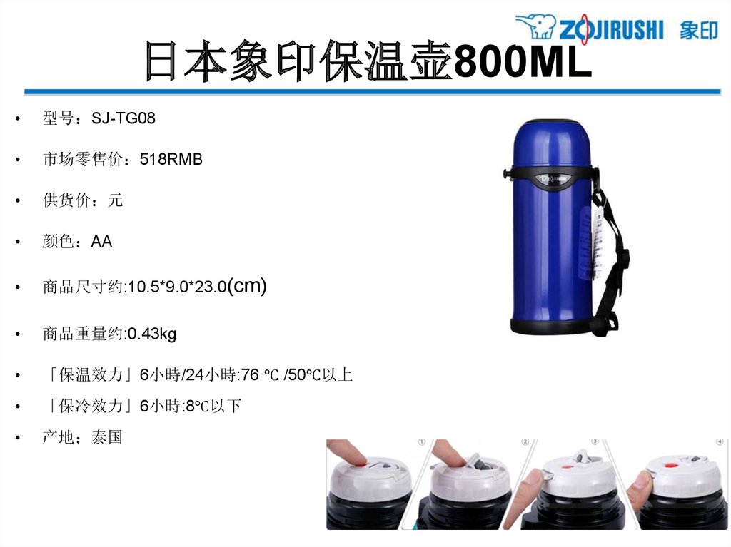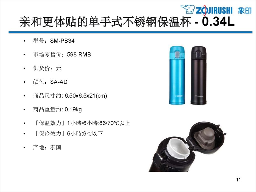 亲和更体贴的单手式不锈钢保温杯 - 0.34L型号 SM-PB34