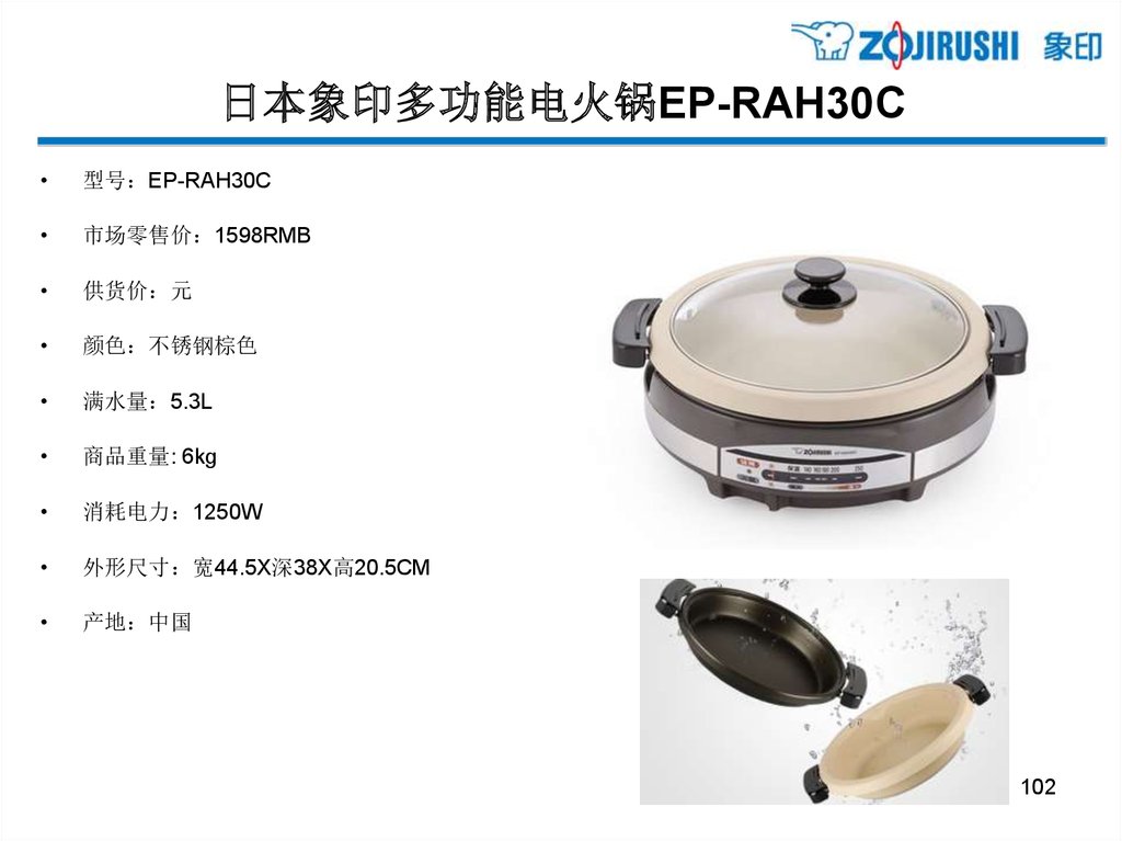 日本象印多功能电火锅EP-RAH30C型号 EP-RAH30C