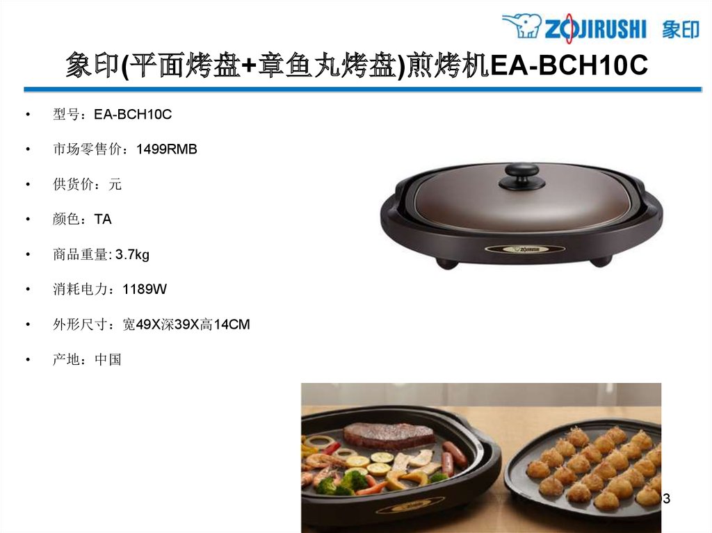 象印(平面烤盘+章鱼丸烤盘)煎烤机EA-BCH10C型号 EA-BCH10C