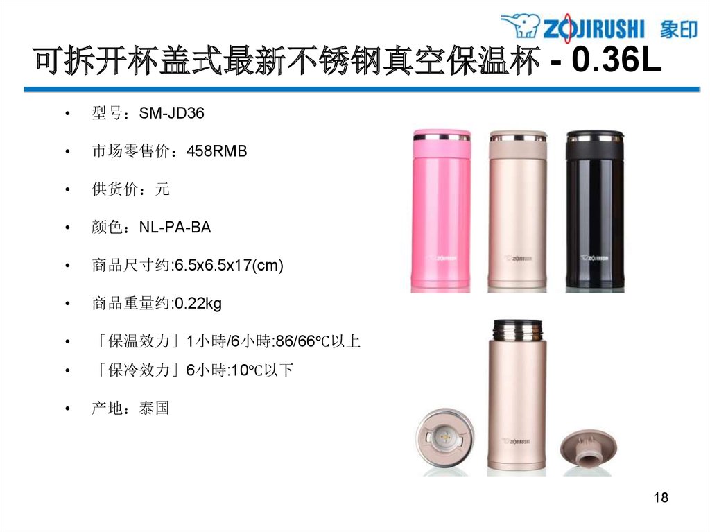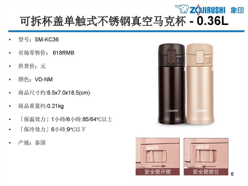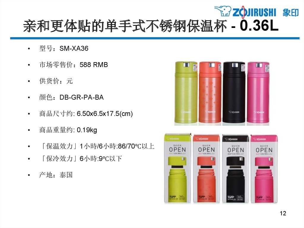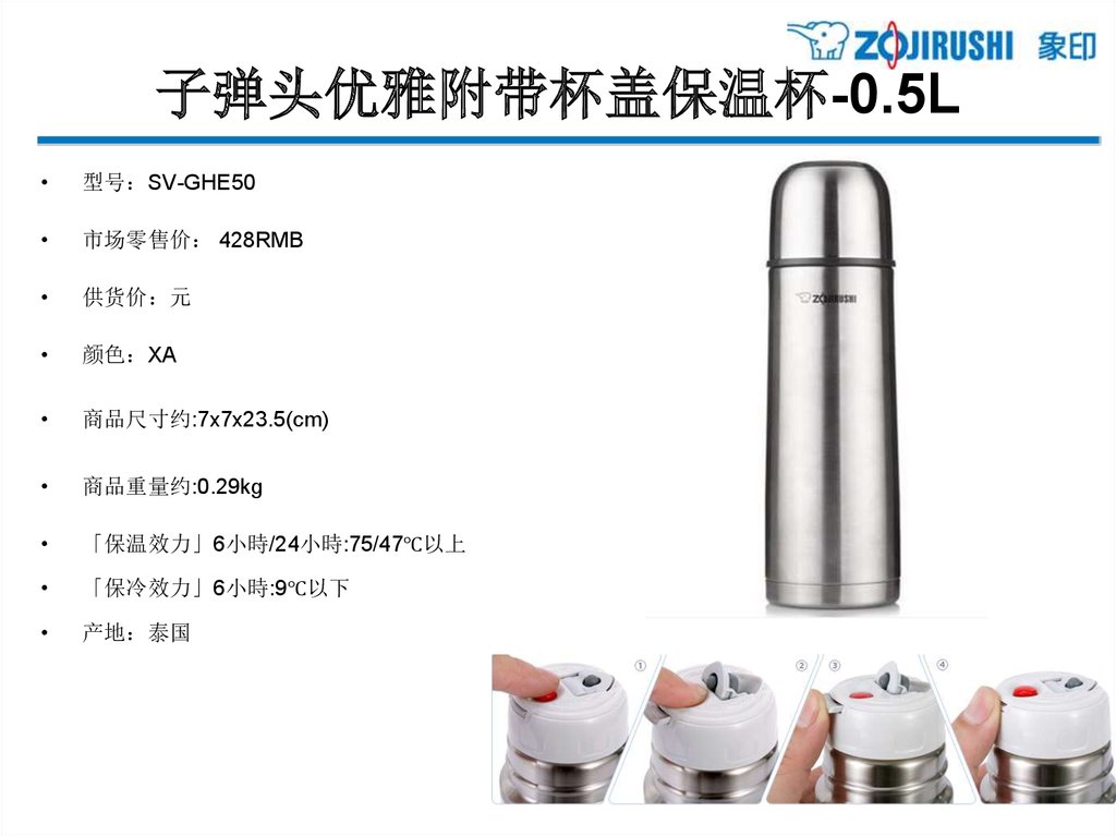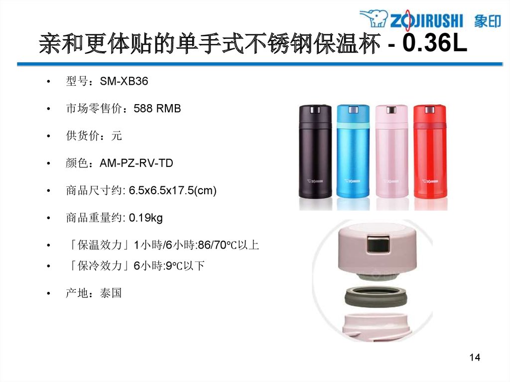 亲和更体贴的单手式不锈钢保温杯 - 0.36L型号 SM-XB36