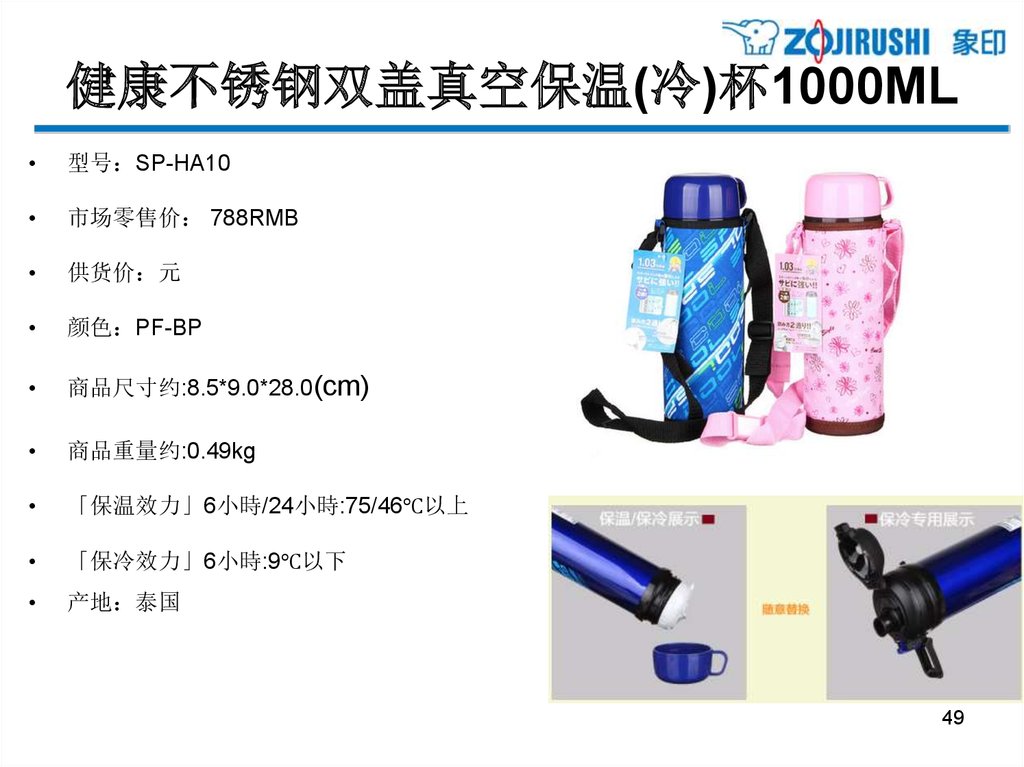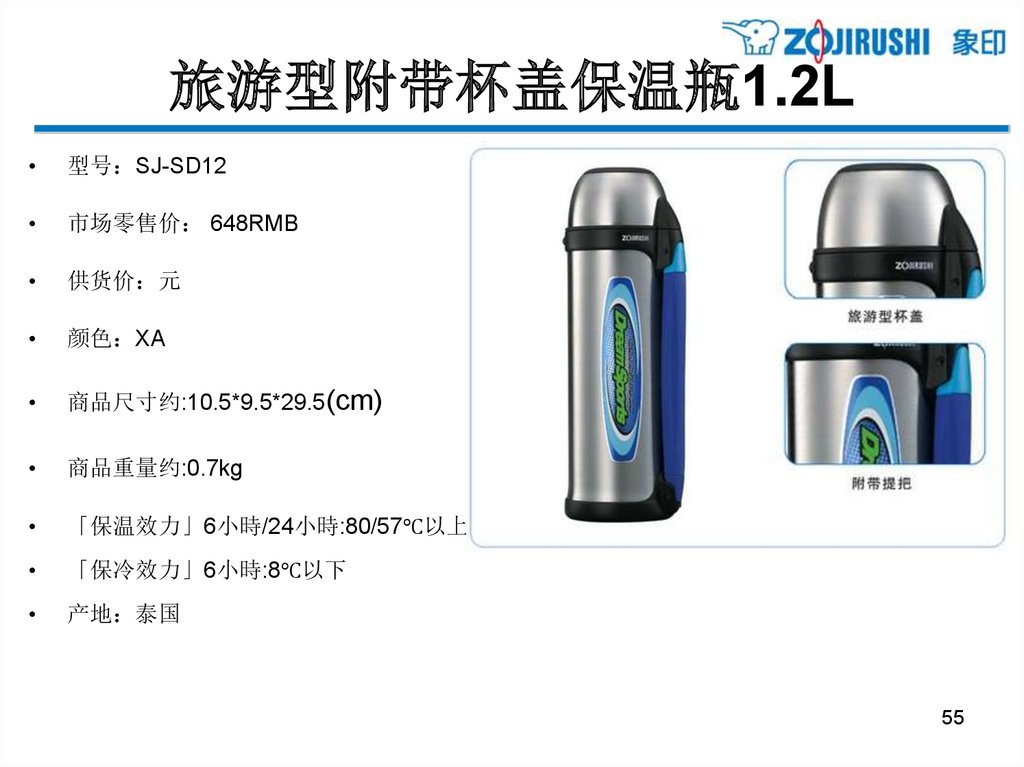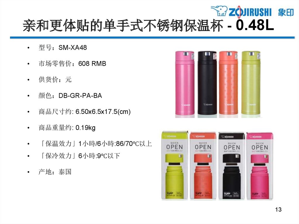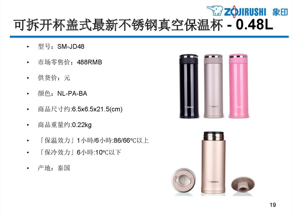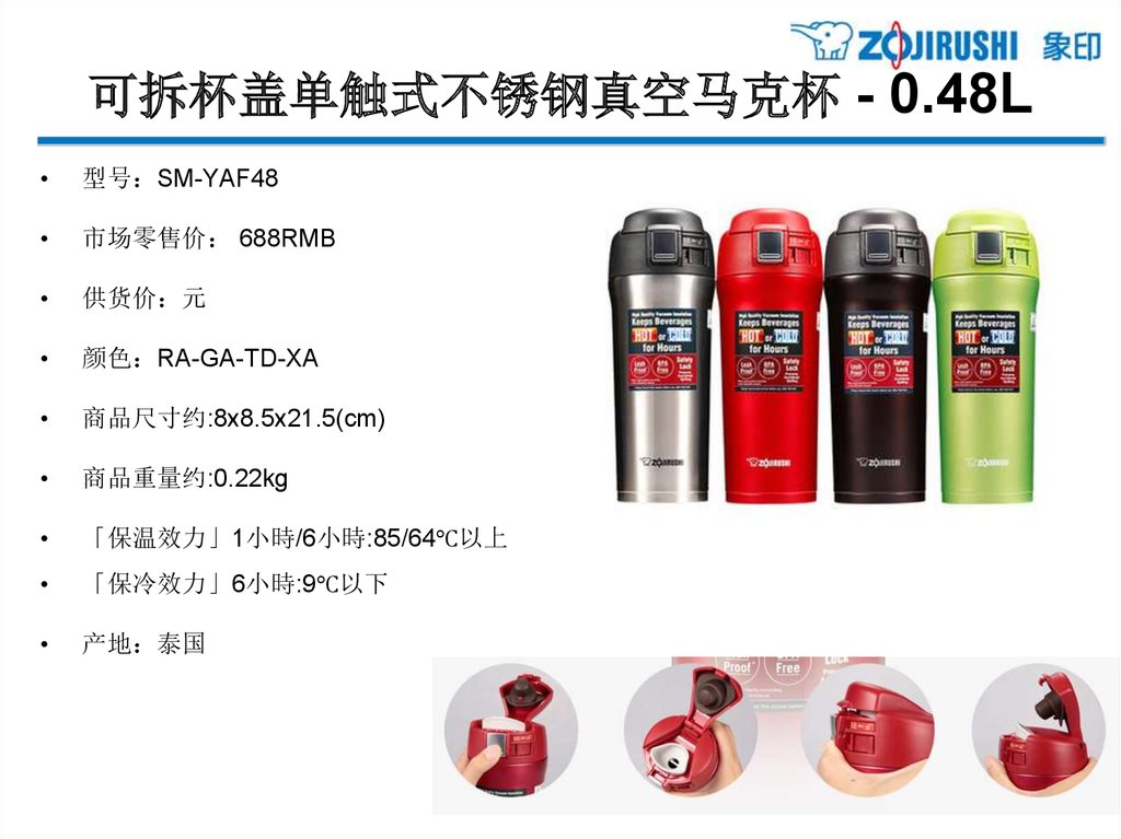 亲和更体贴的单手式不锈钢保温杯 - 0.48L型号 SM-XB48
