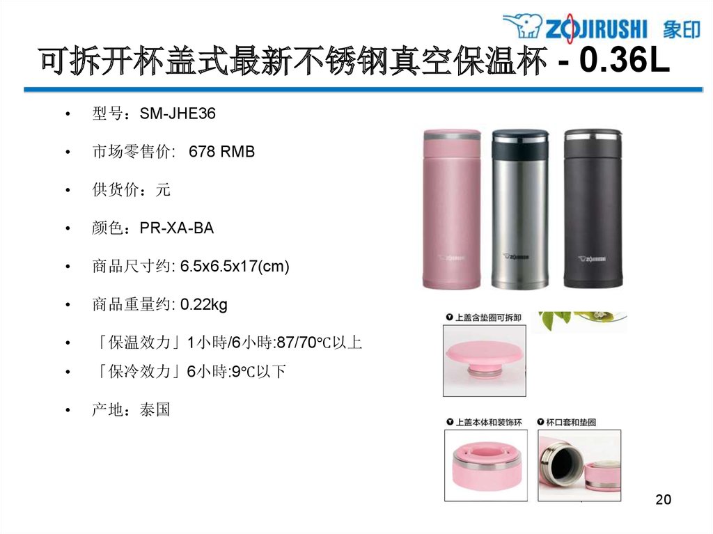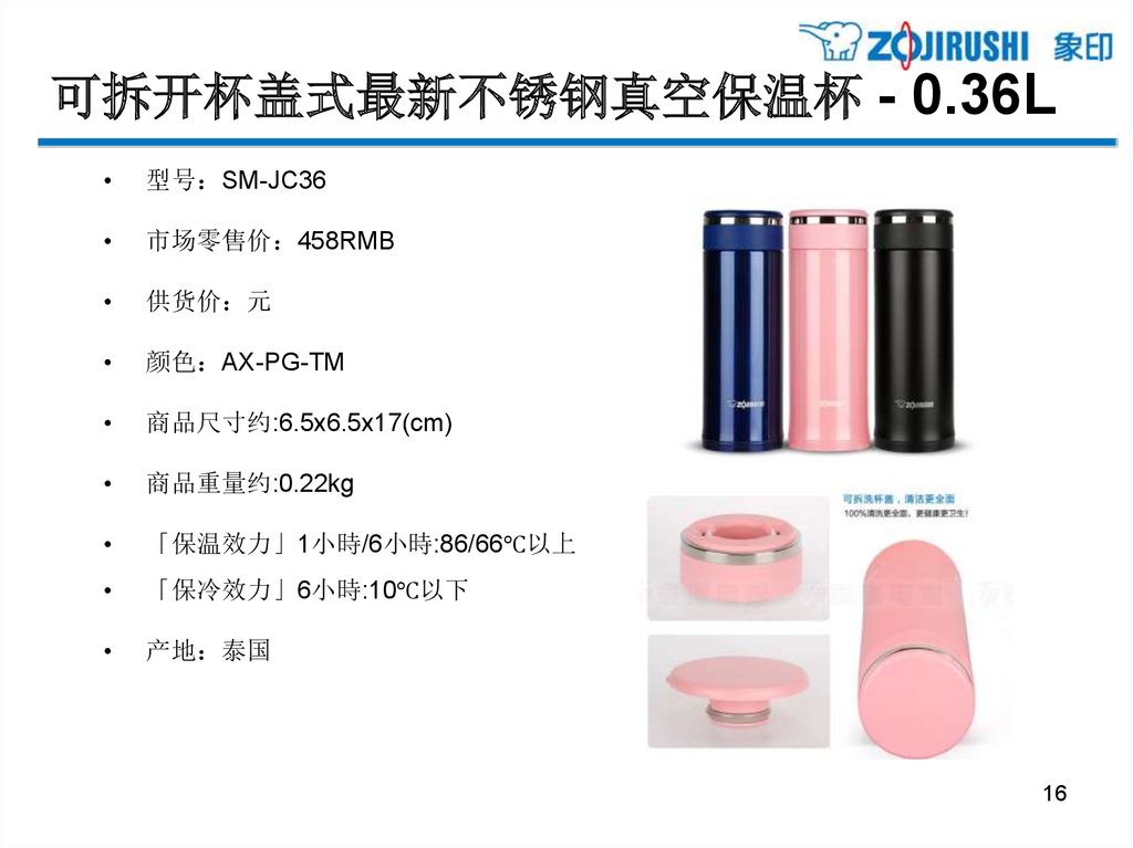 可拆开杯盖式最新不锈钢真空保温杯 - 0.36L型号 SM-JC36