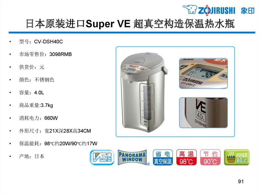 日本原装进口微电脑电热水瓶型号 CD-JUH30C
