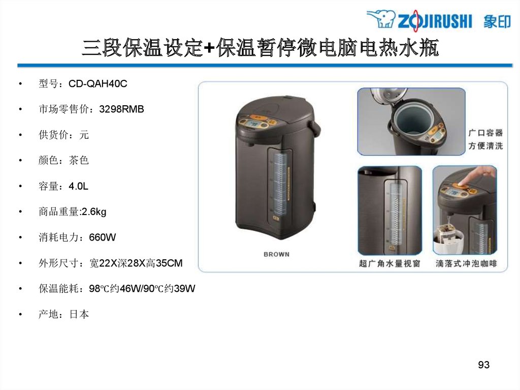 三段保温设定+保温暂停微电脑电热水瓶型号 CD-QAH40C