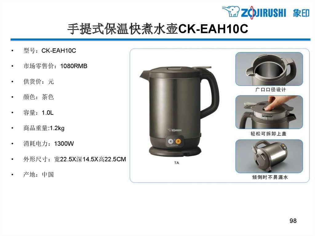 手提式保温快煮水壶CK-EAH10C型号 CK-EAH10C
