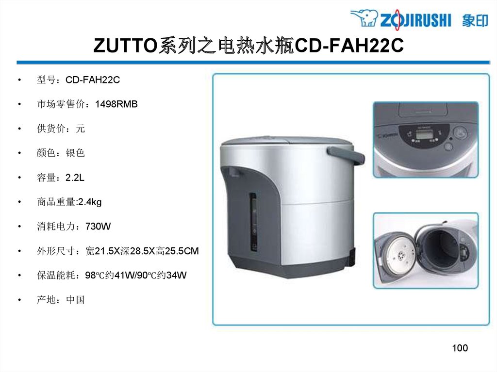 ZUTTO系列之电热水瓶CD-FAH22C型号 CD-FAH22C