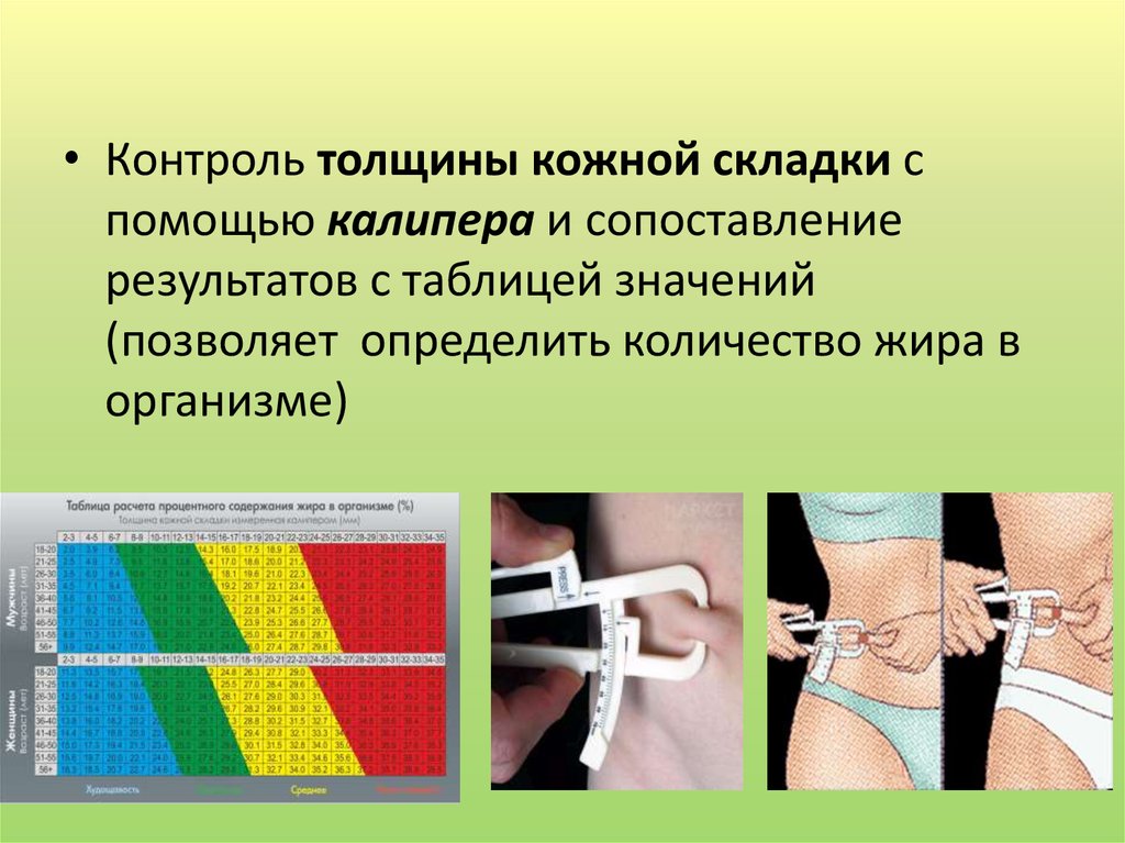 • Контроль толщины кожной складки спомощью калипера и сопоставление