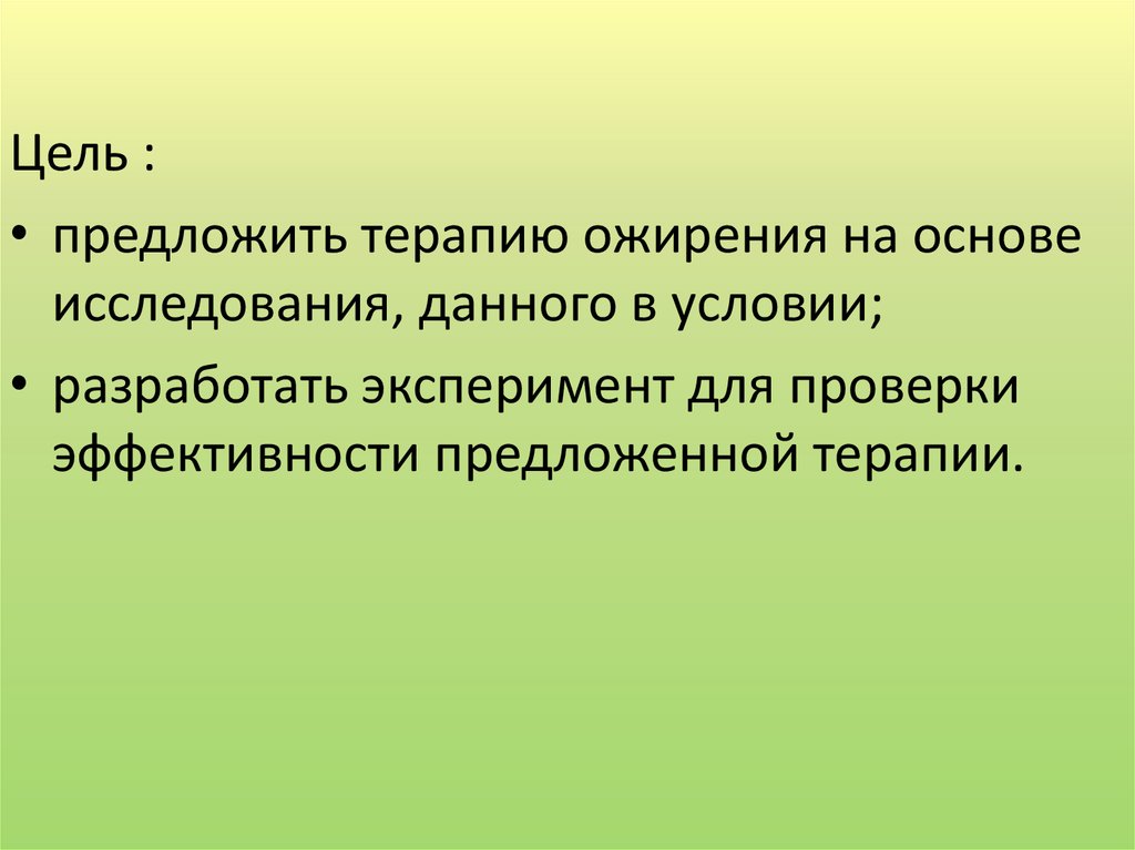 Цель :• предложить терапию ожирения на основе