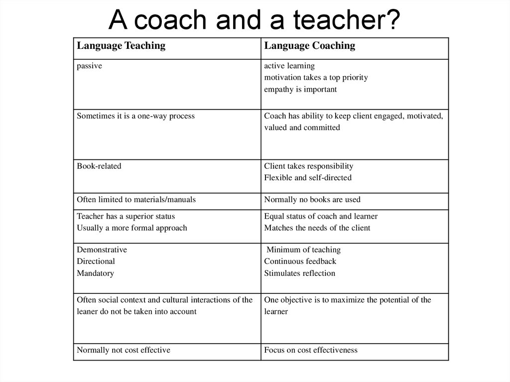A coach and a teacher?Language Teaching