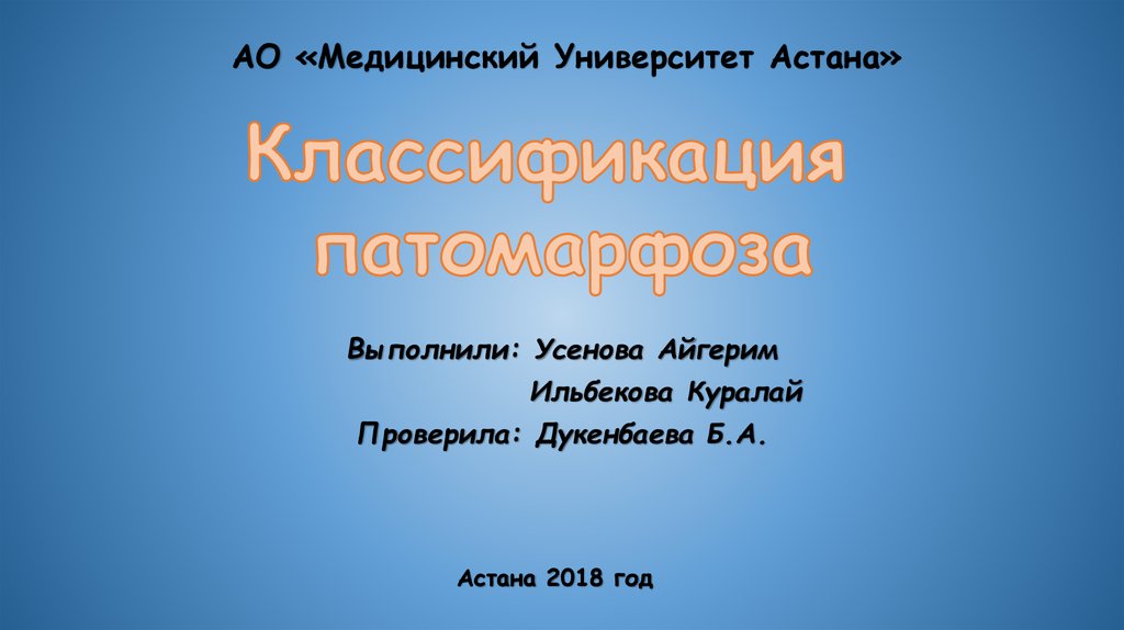 АО «Медицинский Университет Астана»Выполнили: Усенова Айгерим