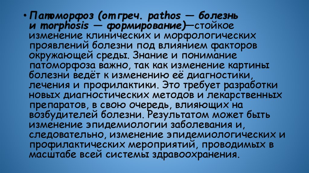 • Патоморфоз (от греч. pathos — болезньи morphosis — формирование)—стойкое