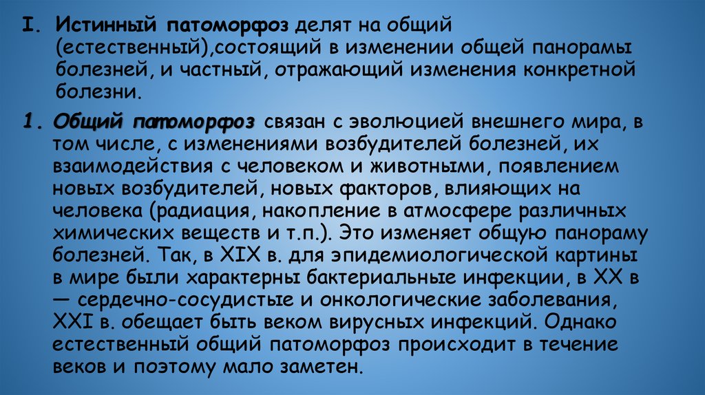 I. Истинный патоморфоз делят на общий(естественный),состоящий в изменении общей панорамы