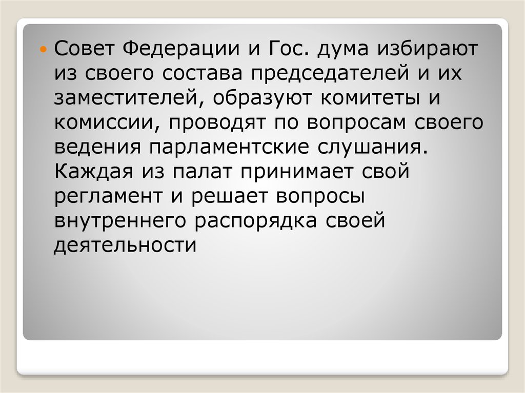 Совет Федерации и Гос. дума избираютиз своего состава председателей и их