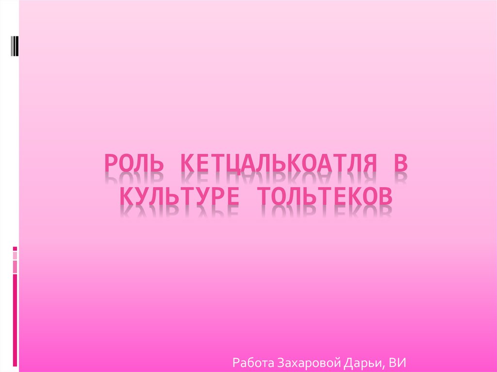 РОЛЬ КЕТЦАЛЬКОАТЛЯ ВКУЛЬТУРЕ ТОЛЬТЕКОВ