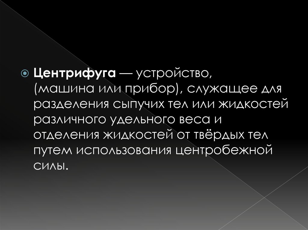 Центрифуга — устройство,(машина или прибор), служащее для