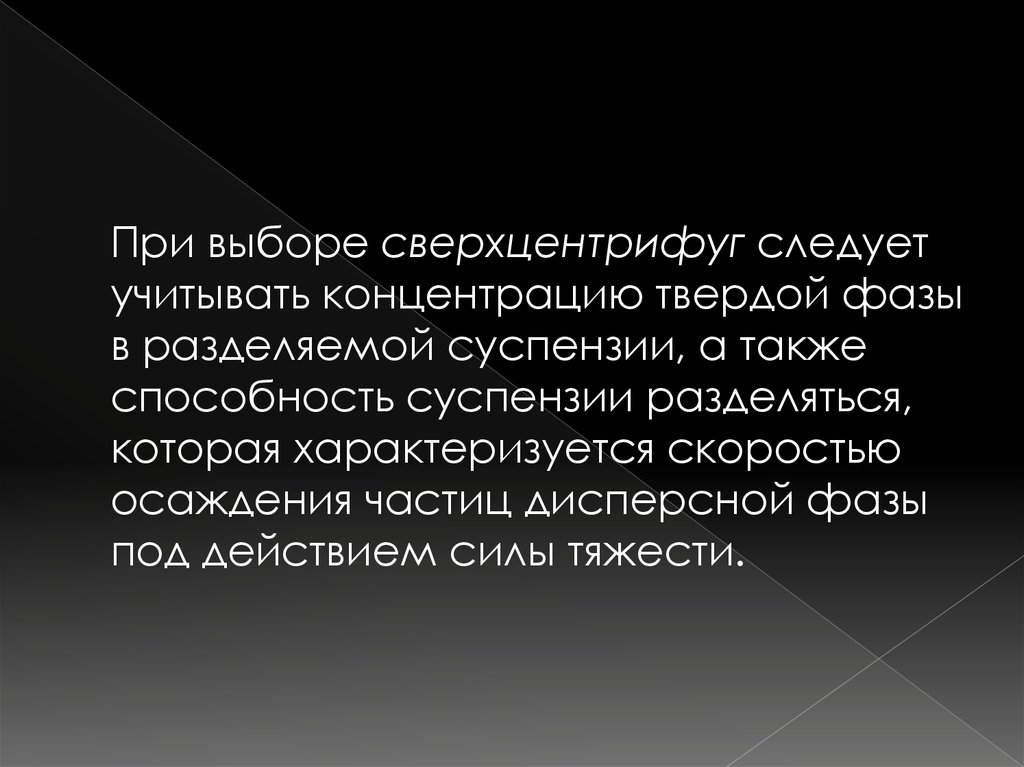 При выборе сверхцентрифуг следуетучитывать концентрацию твердой фазы