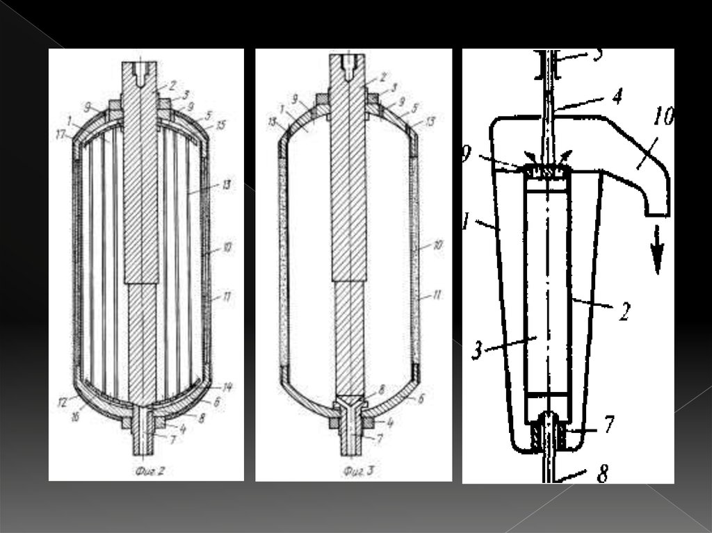 9. Сверхцентрифуги изготовляют с осветляющим или разделяющим барабаном. В разделяющем барабане установлена сменная кольцевая