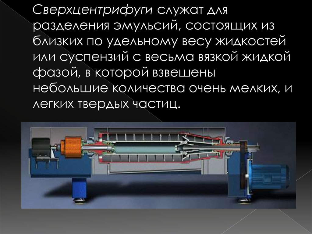 Сверхцентрифуги служат дляразделения эмульсий, состоящих из