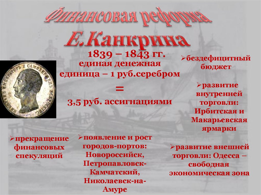 1839 – 1843 гг.единая денежная