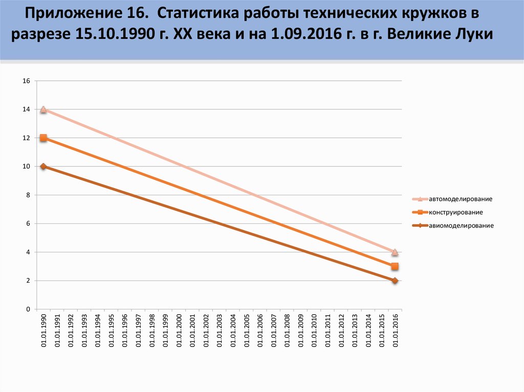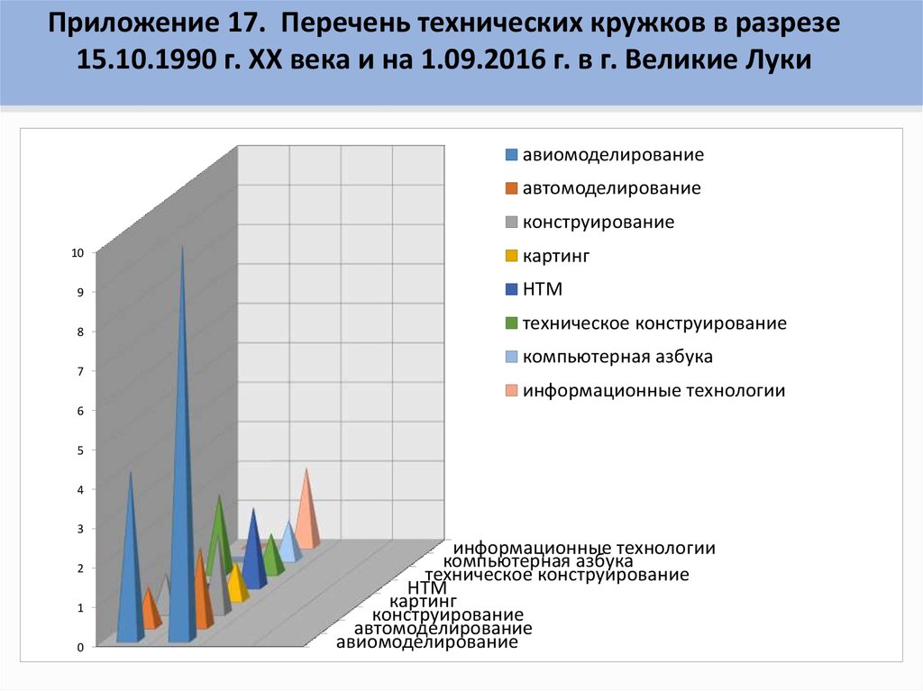 Приложение 17. Перечень технических кружков в разрезе15.10.1990 г. ХХ века и на 1.09.2016 г. в г. Великие Луки