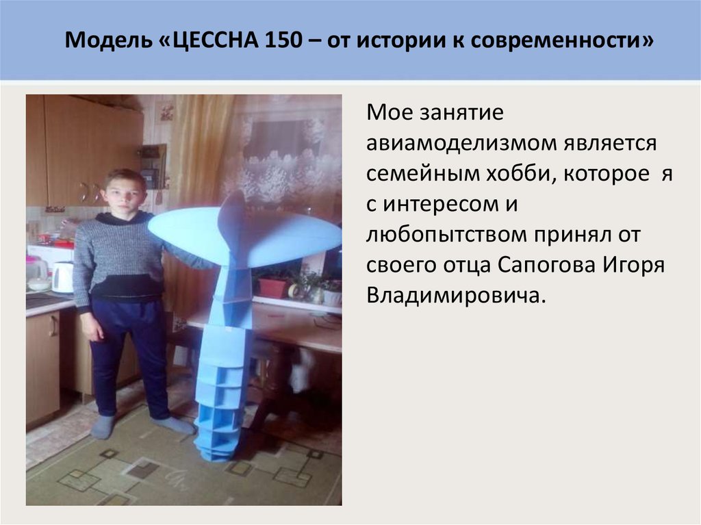 Модель «ЦЕССНА 150 – от истории к современности»Мой папа заинтересовался