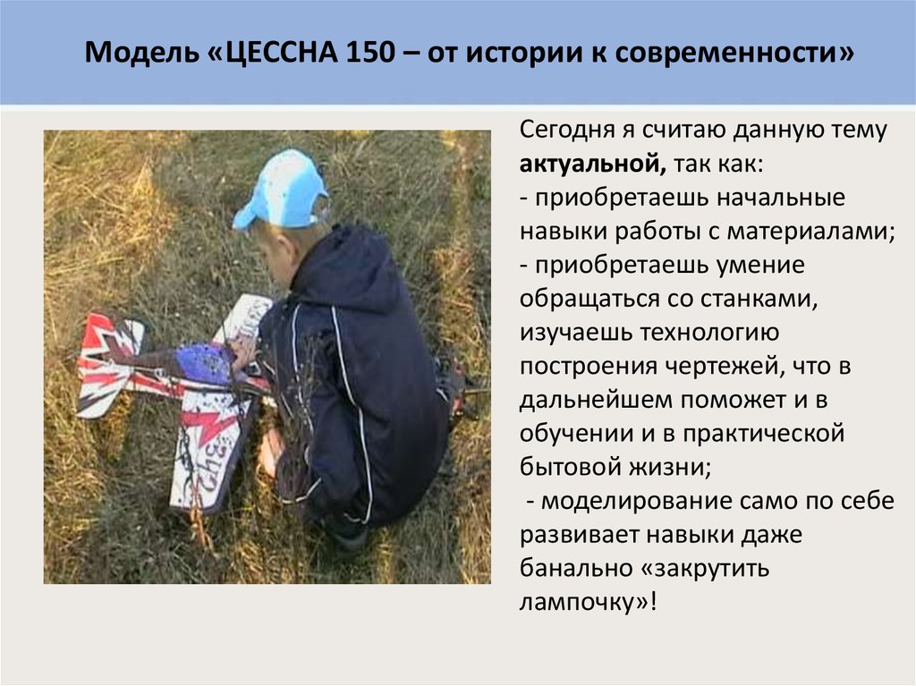Модель «ЦЕССНА 150 – от истории к современности»Сегодня я считаю данную тему
