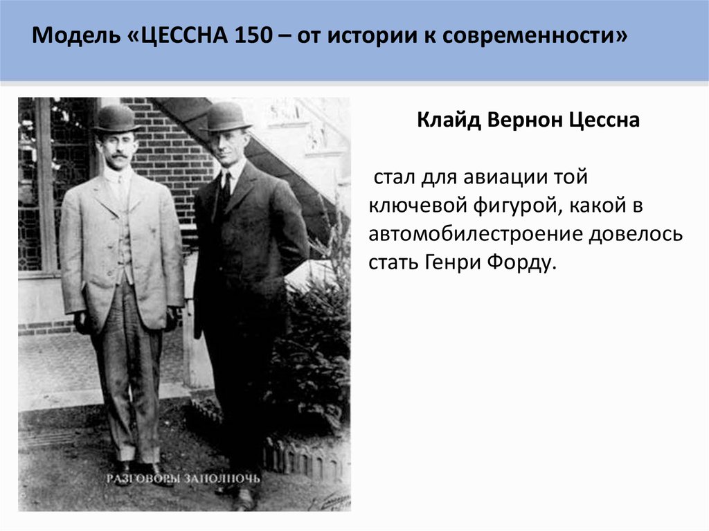 Модель «ЦЕССНА 150 – от истории к современности»Клайд Вернон Цессна