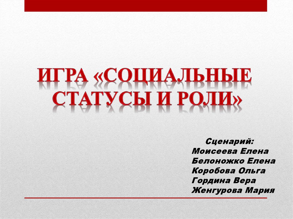 Школьник должны будут написать 4 социальныхстатуса и роли этих людей (можно будет придумать) и