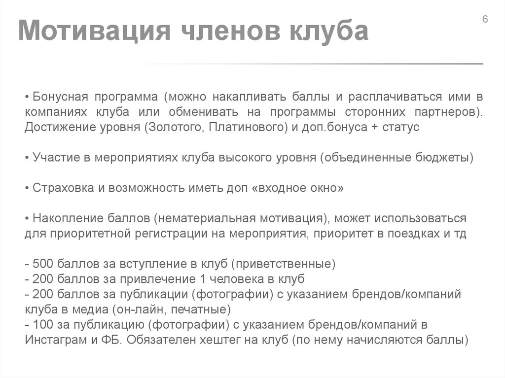 • Участие в мероприятиях клуба высокого уровня (объединенные бюджеты)