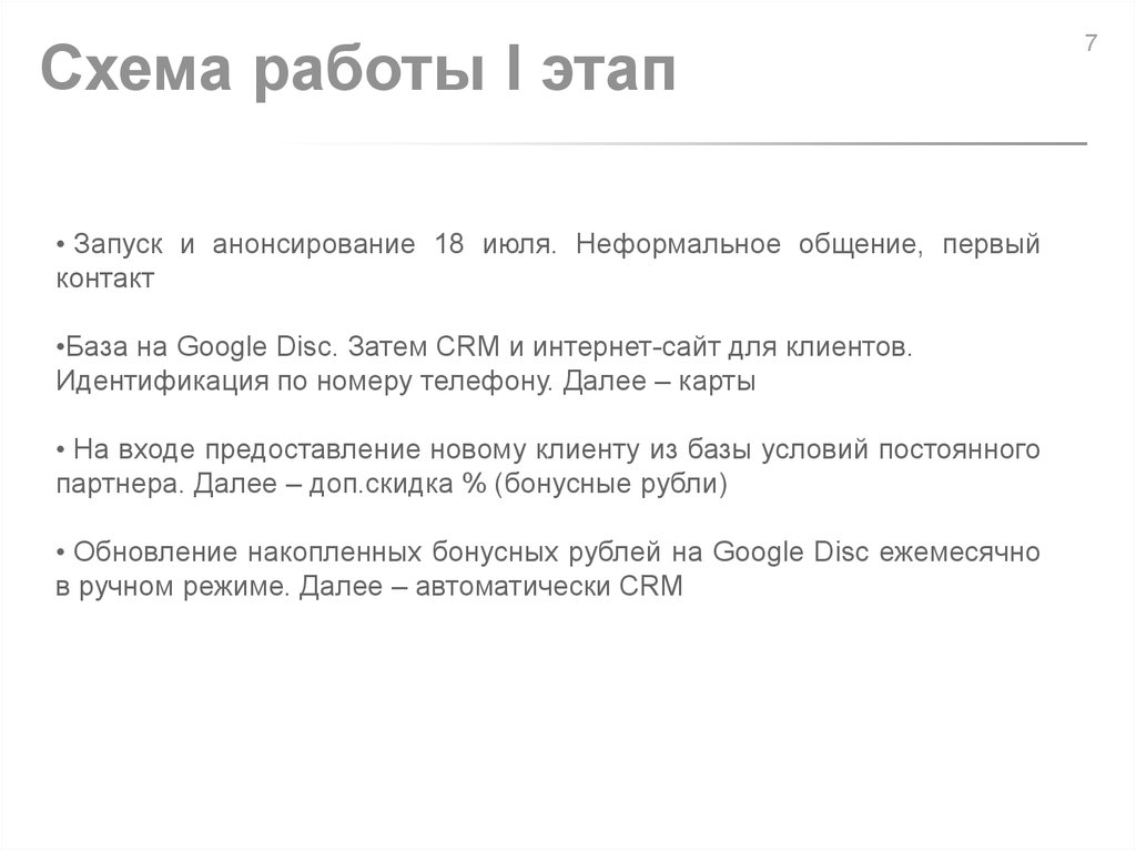 •База на Google Disc. Затем CRM и интернет-сайт для клиентов.