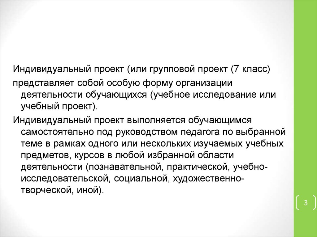 Индивидуальный проект (или групповой проект (7 класс)представляет собой особую форму организации