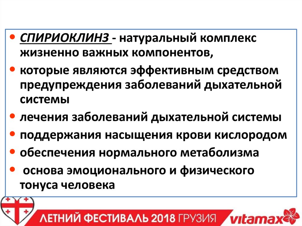 • СПИРИОКЛИНЗ - натуральный комплексжизненно важных компонентов,
