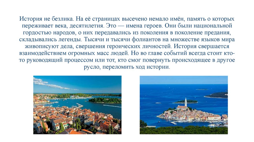 живописуют дела, свершения героических личностей. История свершается