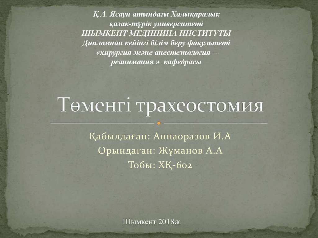 1. Төменгі трахеостомия