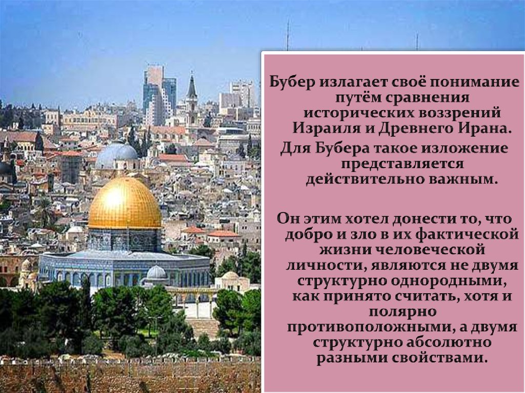 Бубер внёс значительный вклад в рассмотрение проблемы добра и