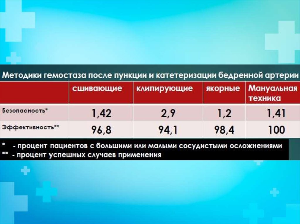 24. Методики гемостаза после пункции и катетеризации бедренной артерии
