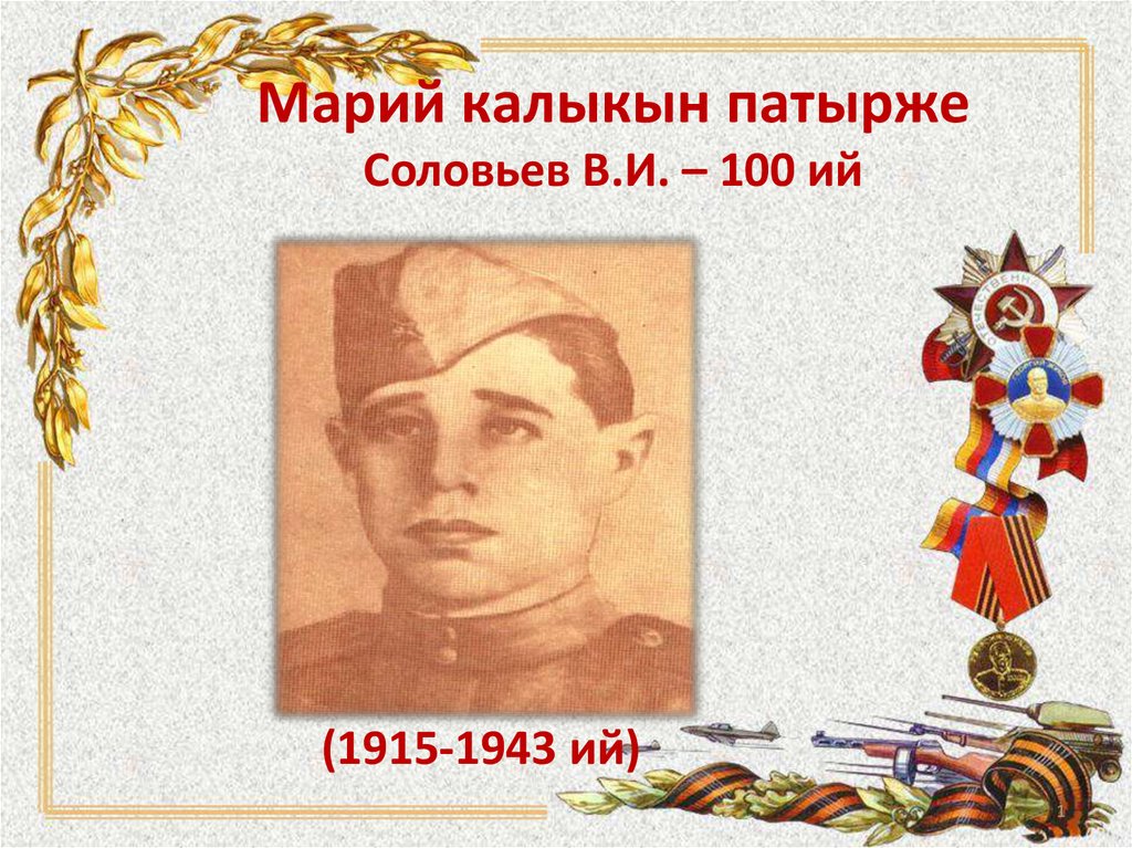 Марий калыкын патырже. Соловьев В.И. – 100 ий (1915-1943)