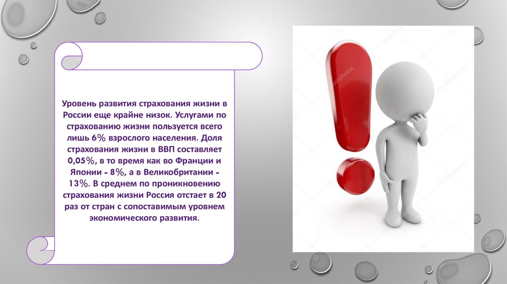 Уровень развития страхования жизни вРоссии еще крайне низок. Услугами по