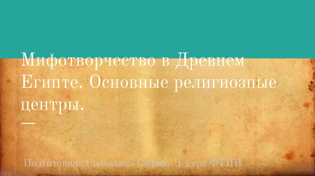 Мифотворчество в ДревнемЕгипте. Основные религиозные