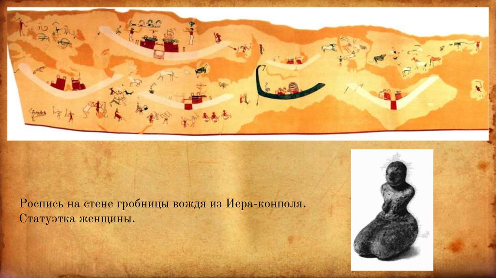Роспись на стене гробницы вождя из Иера-конполя.Статуэтка женщины.