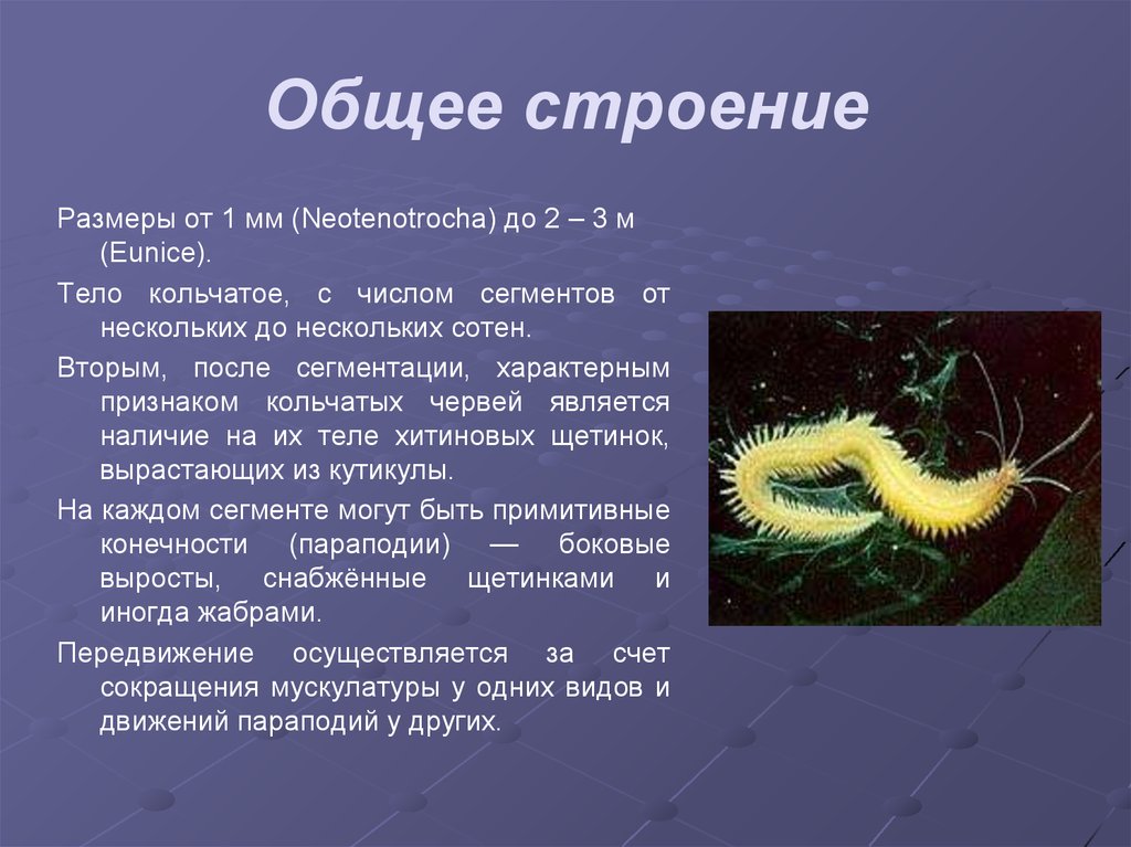 Общее строениеРазмеры от 1 мм (Neotenotrocha) до 2 – 3 м
