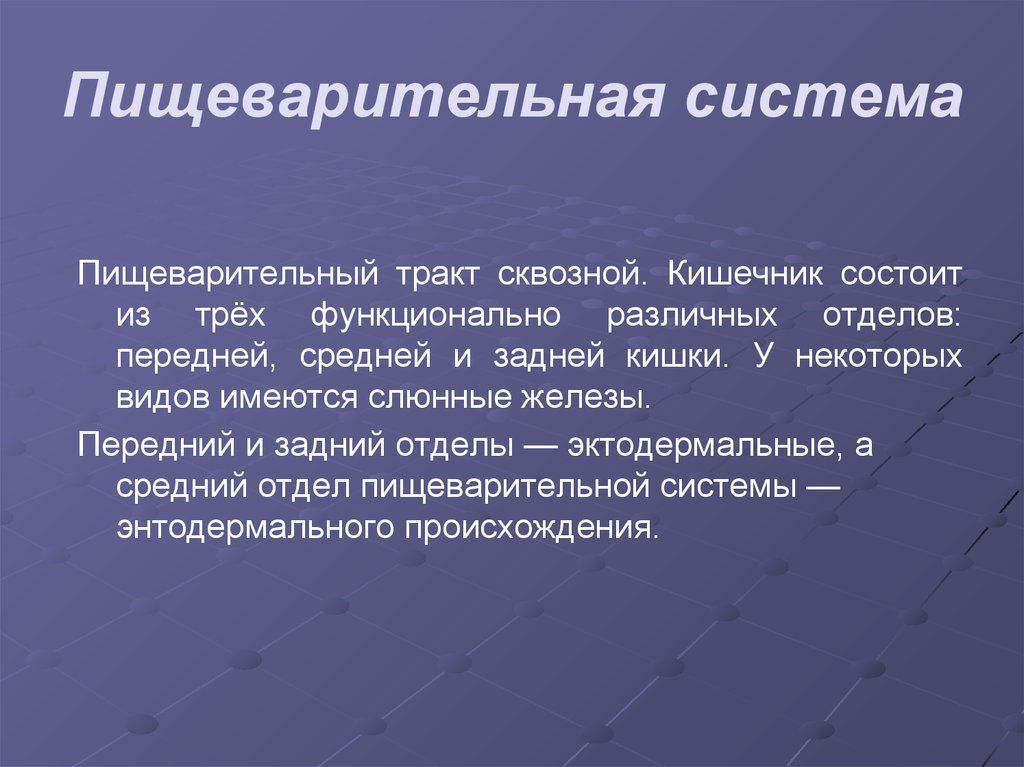Пищеварительная системаПищеварительный тракт сквозной. Кишечник состоит