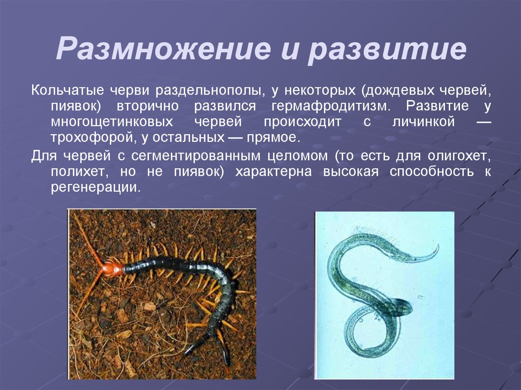 Размножение и развитиеКольчатые черви раздельнополы, у некоторых (дождевых червей,